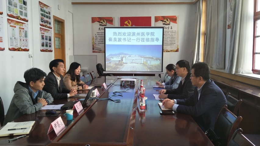 11月1日下午,滨州医学院公共卫生与管理学院党委书记崔良波,党委副书记李新政,思政教师徐风娟到学院调研beat365在线体育官网教育部“三全育人”试点工作。学院党委书记李强,党委副书记王平、团委书记韩菡等会见客人并座谈。