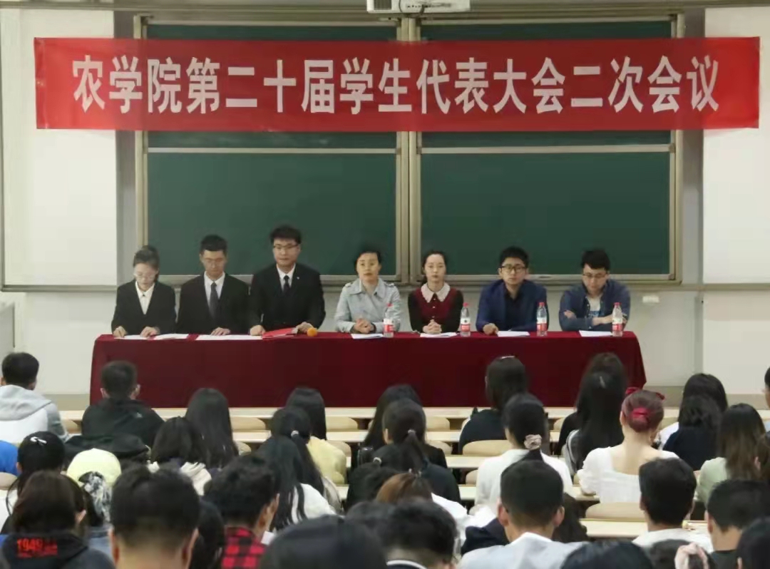 5月7日中午,农学院第二十届学生代表大会二次会议于综合楼N104举行。团委老师尹昌美、程璐、许超、李建,2020届学生会主席团、各部门负责人以及各年级学生代表参会。