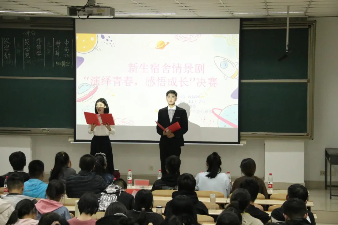 为拓宽心理健康教育新途径,构建文明和谐宿舍氛围,11月7日晚,农学院新生心理情景剧大赛决赛于综合楼N104正式拉开序幕。本次比赛以“演绎青春,感悟成长”为主题,农学院辅导员李建老师与全体新生到场观看。