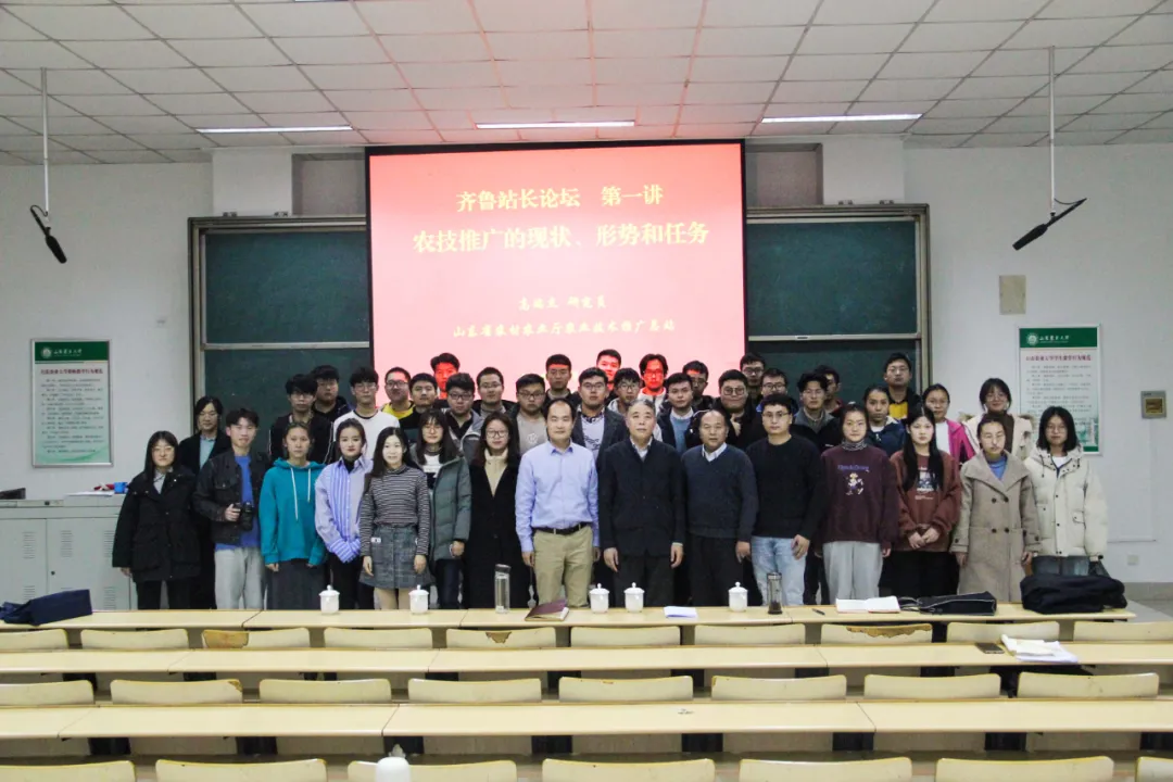 11月24日下午,农学院于综合楼N502举办第一期齐鲁站长论坛,论坛由农学院农学专业主任刘鹏主持,邀请山东省农业技术推广总站站长高瑞杰莅临主讲,全体公费农科生到场聆听。