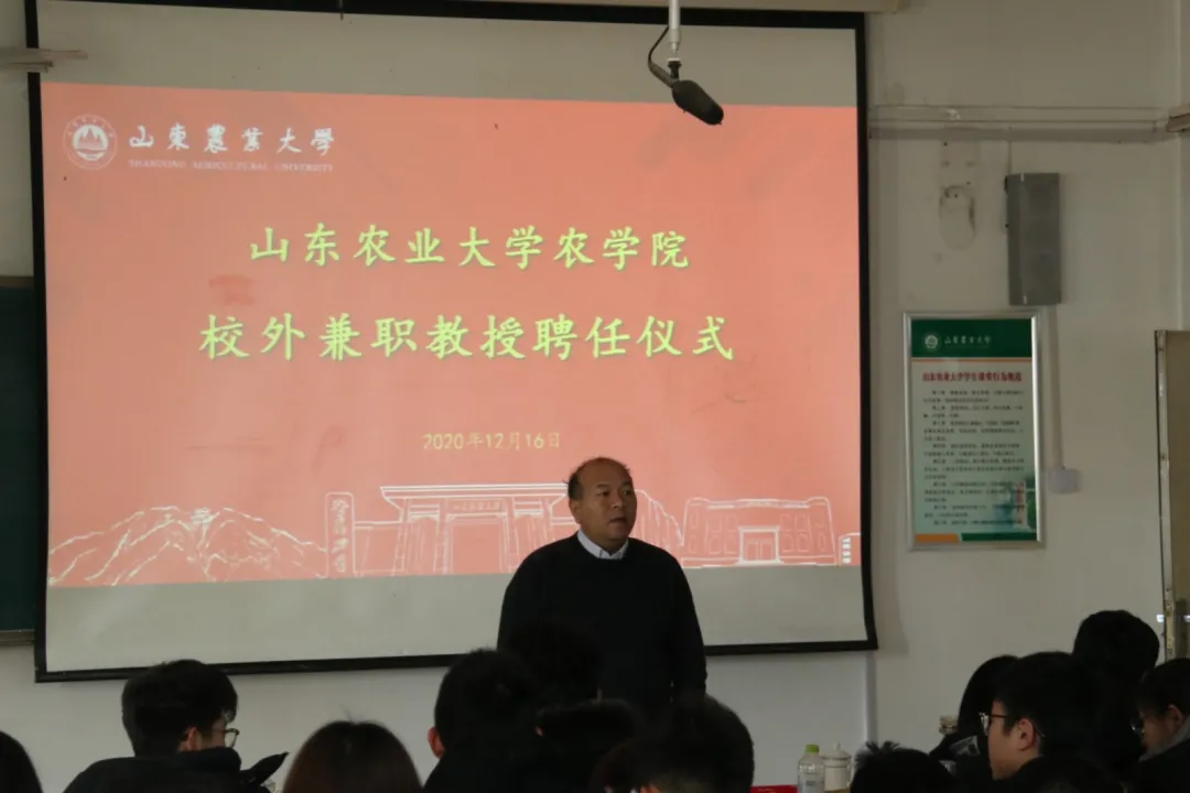 12月16日下午,农学院于综合楼S219举办第二期齐鲁站长论坛,论坛由农学院农学专业主任刘鹏主持,邀请泰安市农技站殷复伟站长莅临主讲,全体公费农科生到场聆听。 会议伊始,学院副院长鲍印广为殷站长颁发校外兼职教授聘任证书。 会上,殷站长由自身工作感受出发,表达对公费农科生的殷切期望。殷站长通过PPT的形式从创新方式、开展调研、规范技术等五个方面向同学们讲解创新推广方式,助推农技推广的详细措施。并结合工作实际着重介绍农技推广成立联盟的原因、背景及主要工作任务。殷站长用朴素的语言,通过工作中的实际情况进行讲述,引人入胜,说服力强。会后,殷站长与同学们进行亲切互动,针对19级公费生何勇提出的农技推广工作记忆点的问题,殷站长表示:农技推广做到既能落地,又能得到同行认可,最终实现技术独立就是最大的记忆点。 本次齐鲁站长论坛使公费生们进一步明确了将来的工作细节。“这次站长论坛让我明白了作为公费农科生应该做什么,我会摆正位置、提高眼界,提前了解相关知识,为将来入职后更快的融入工作做准备。”19级公费生李亚宁会后谈到。