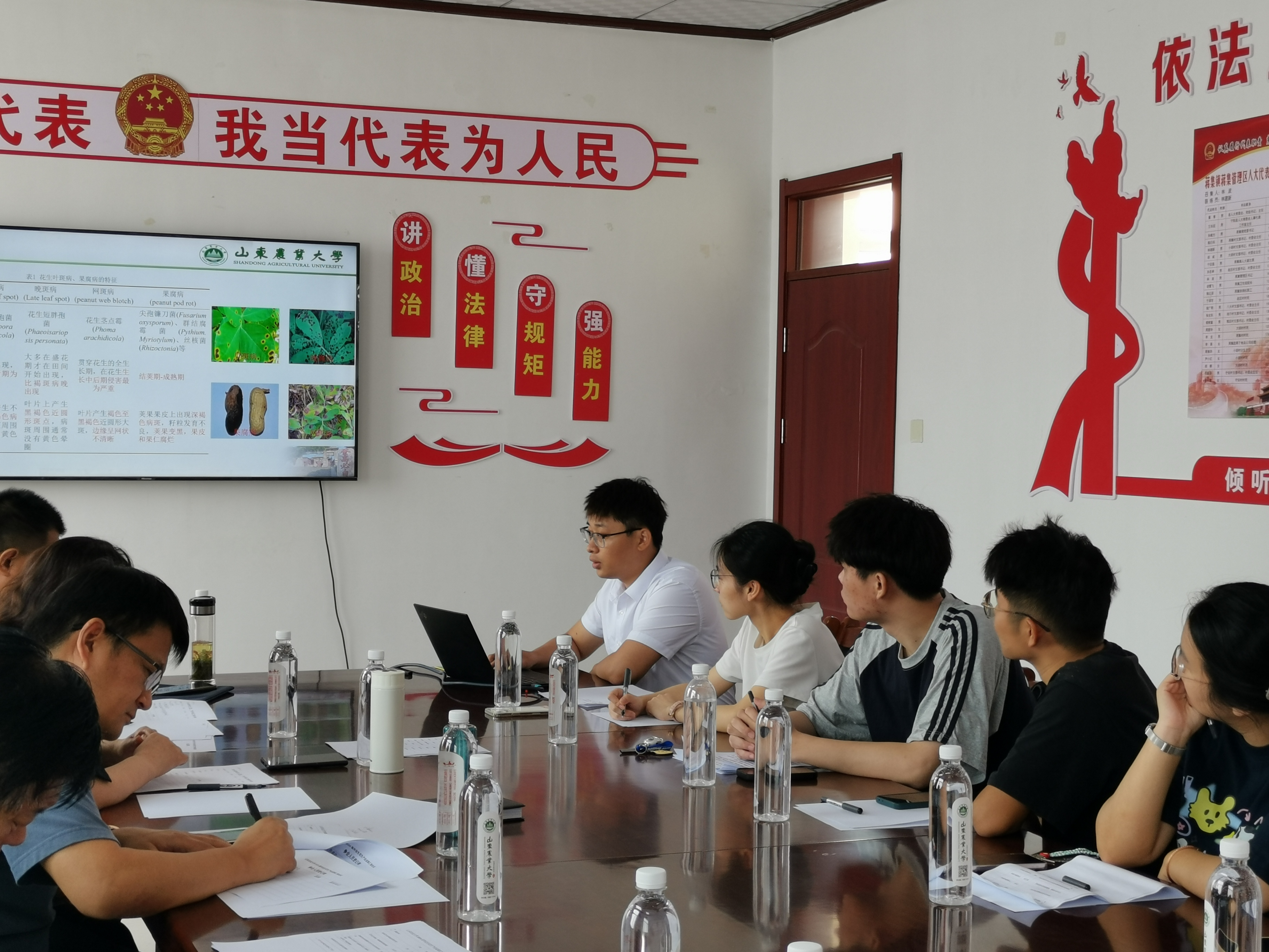 6名毕业生代表结合毕业设计,围绕花生高油、抗病、抗旱耐盐新品种鉴定评价、花生抗逆丰产关键栽培术、花生病虫害防治、花生乳制品加工等内容进行了汇报交流。宁阳县农技推广专家结合当地花生生产的优势和亟需解决的问题,逐一点评了毕业生同学研究成果在花生产业发展中的意义和应用前景,并提出了具体的工作建议。